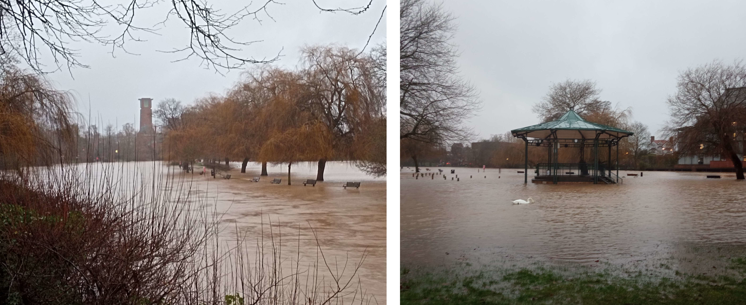 This week it rained a lot. All across England rivers burst their banks and inundated surrounding settlements. My hometown was no exception as the river flooded the low-lying areas all across town over the last few days. Fortunately the left-bank, which has a lower elevation and thus took on most of the floodwater, is the less inhabited side, so most people's homes were unaffected. Walking around the town I know so well in such a different state felt very strange. It felt like a different place, our own "acqua-alta". My usual routes were no longer feasible, the old buildings had new moats, and the very geography itself, something I envisage as unchanging, had shifted fundamentally creating a "mirror-town" which was not the same as that place I grew up.