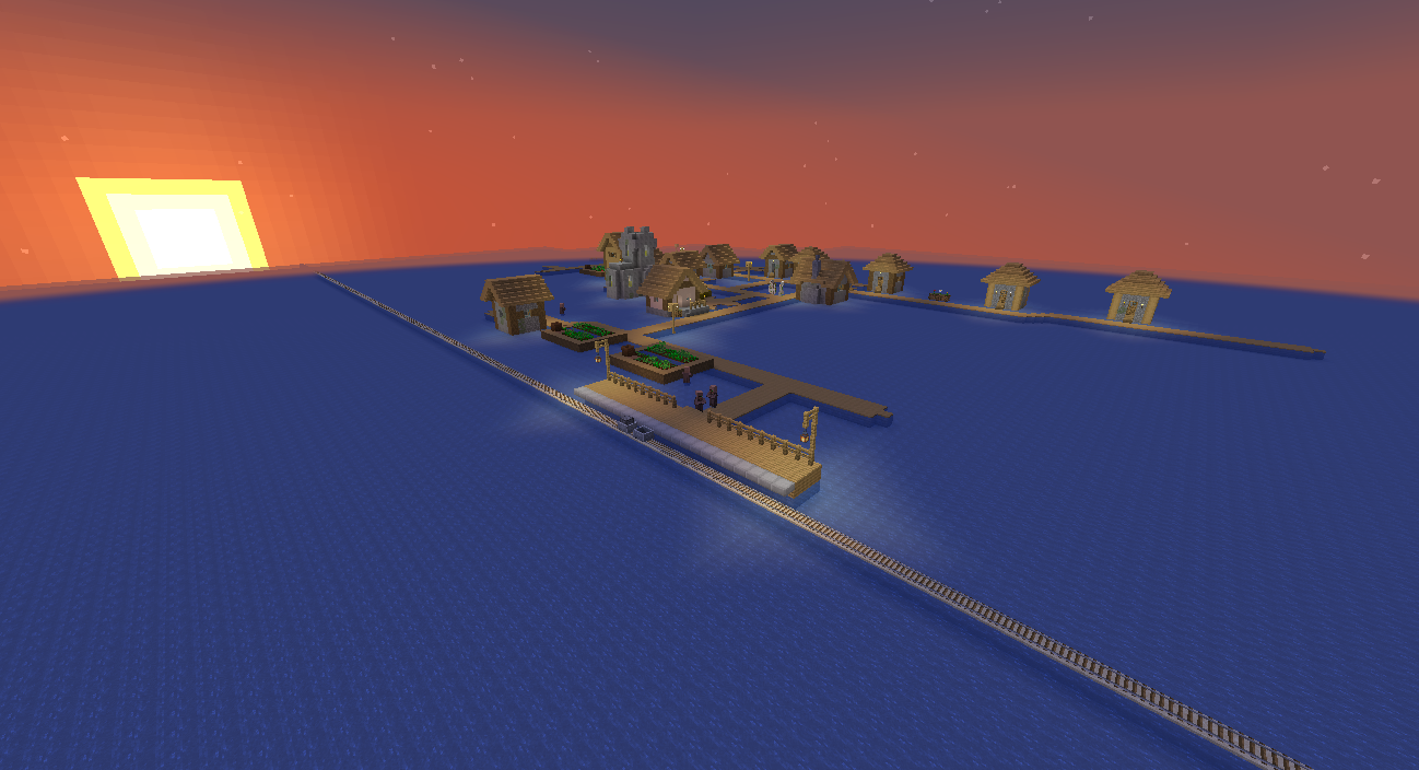 PS: If you're really into this sort of world, you might enjoy this idea. A few years back I was exploring the "infinite, shallow ocean" idea, a-la the train scene from Spirited Away: I even wrote a worldbuilding premise including it. You can create a unique Minecraft experience like this if you create a superflat-world with the custom preset of: minecraft:bedrock,5*minecraft:stone,3*minecraft:sand,minecraft:water;minecraft:plains Thus creating an infinite one-block deep ocean. Make sure to turn "Generate Structures" on too so you can explore the weird little floating villages it generates. I then went one step further and travelled around via rail, you can do this by building a dozen-odd blocks of track in a straight line (mine just consisted of a sand-block with a rail on-top repeated), then using a command similar to this: /clone ~-1 ~-1 ~ ~-64 ~1 ~ ~ ~-1 ~ This will clone the track behind you ahead of you (note that this specific command only works when travelling from West to East, you'll need to swap the cardinals and negatives around to adjust for different directions). If you then hop in a minecart and move along it, you can generate the track in front of you by repeatedly pasting the command and travel forward indefinitely. I would stop whenever I saw a structure generate in the distance and build a little station, along with a method of getting from the station to the village. This amused me for many hours during the late pandemic.