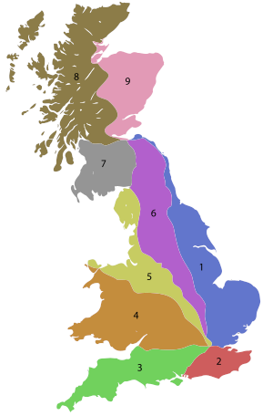 This system worked off of a radial system, emanating from London and Edinburgh. Zones 1-6 radiate from London across England and Wales, while zones 7-9 radiate from Edinburgh across Scotland. These are all bounded on their anticlockwise side by the corresponding 1-digit A road. So all roads within the area bounded by the A3 and A4 would be in Zone 3, for example. Many of these routes followed existing ancient pathways, upgraded to conform with modern needs.