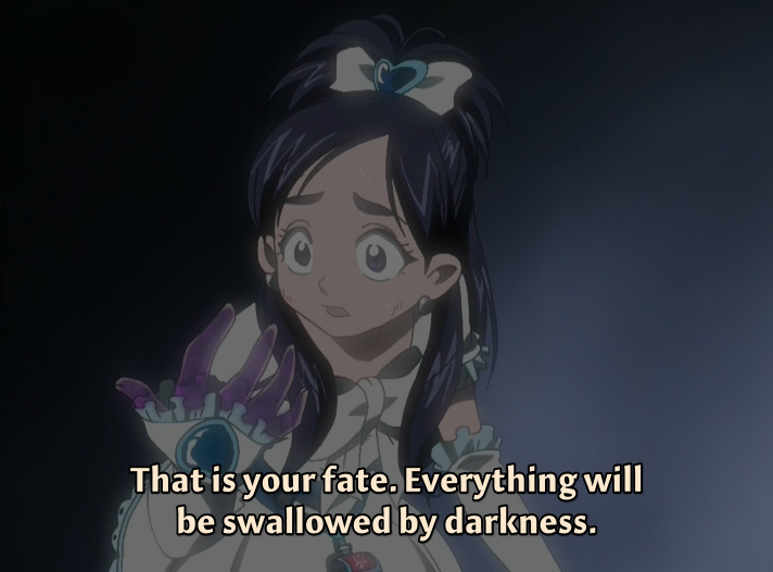 This nice revelation sets the stage for the final arc as the agents of darkness attempt to make themselves into God, while the Devil himself is soon to awaken also. Now that Pretty Cure has reached inner completion, they are ready to face evil without hesitation.