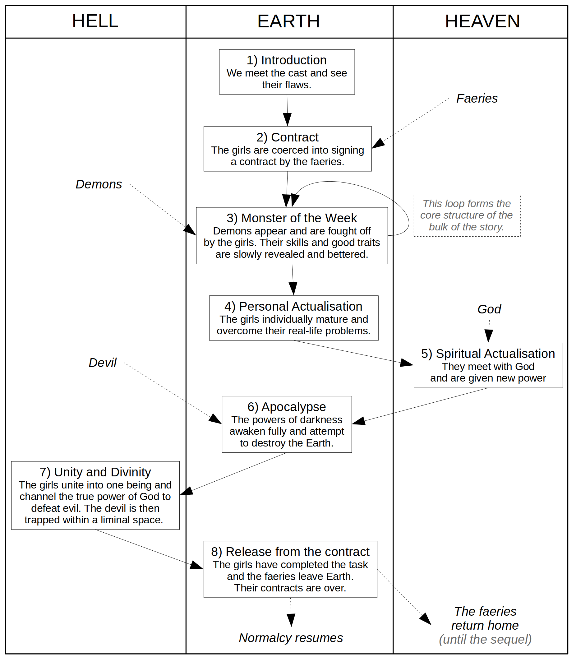 In this, the second chapter of my breakdown of Mahou Shoujo stories analysis, I will try and outline the general structure of magical girl stories. If you haven't read part one you can do so here. I talked about the various character archetypes you will find.