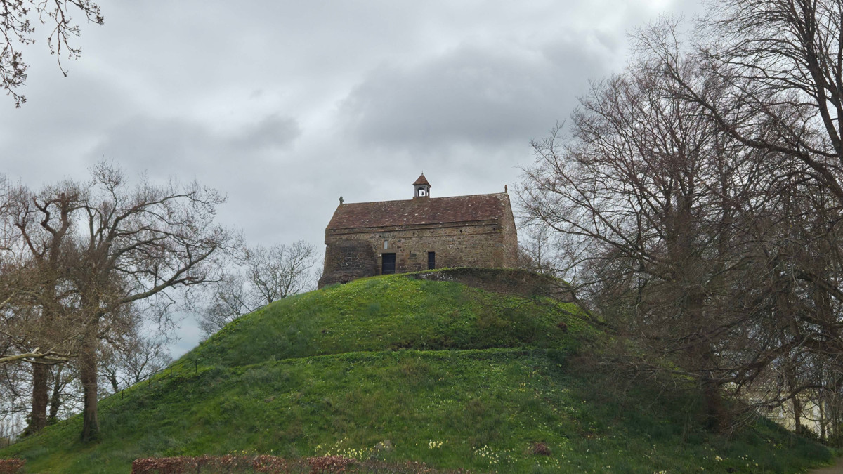 It seems that after Roman Conquest the site lay unused for some centuries. By this point it had been built up into one of the highest points on Jersey and thus a good spot for looking out across the central fields of the island. There is some evidence of a wooden tower being constructed atop it for this reason. Then in the 12th century things changed for the island. The major part of the Duchy of Normandy, which the Channel Islands were governed under, was taken from the English king by the emerging French crown leading to hundreds of years of on-and-off wars between the two states. Jersey was the closest island to the European mainland under English control, and so increased attention (and money) flowed into her harbours. With some of this wealth a chapel was built on top of the Hoogue dedicated to "Our Lady of Clarte", a Breton saint. In the 16th century (during the pilgrimage boom) the chapel was expanded with a belltower and a curious crypt. The crypt was built into the top level of the hill, and meant to reflect the structure of the Holy Sepulchre with an empty tomb accessed through a trapdoor under the altar.