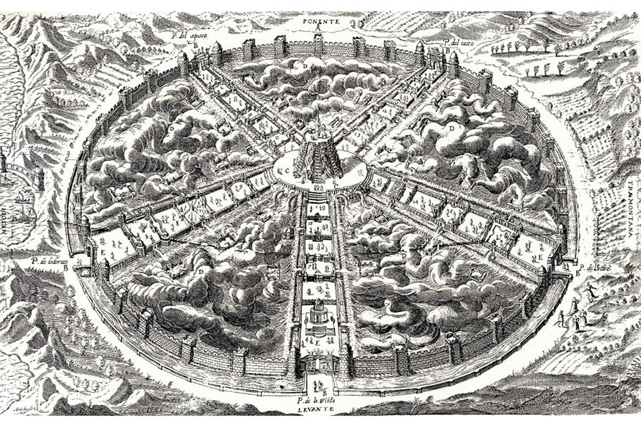 ^Palmanova Fortress design by renaissance Venetian architect virtuoso Scamozzi [13]