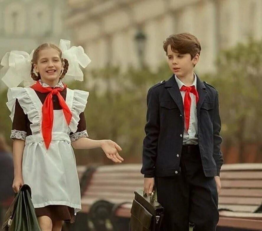 Not much in the way of school uniforms (or schools in general) existed in Russia before the Bolshevik Revolution, but as the communist party came into power they introduced a standard set of uniforms for schools throughout the empire, of course provided by the state to all school children. Over the Soviet years the style shifted to and fro, but essentially kept its original character. Boys wear a sensible shirt and trousers, with a grey Russian-style blazer. Girls however wear what can only be described from my perspective as a maid outfit, with above-knee black dress, white apron and large white pom-poms holding up their hair.